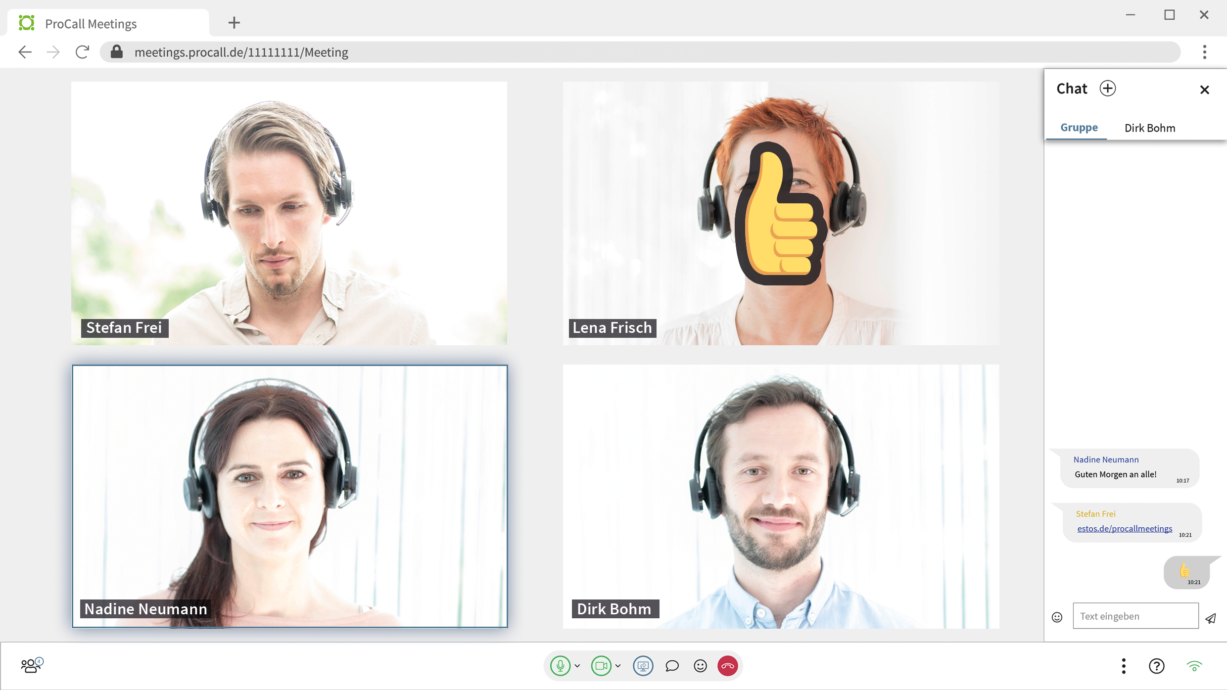 Beispiel ProCall Meetings Anzeige Conversation View - aktive Sprecher werden prominent dargestellt