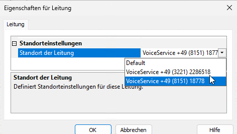 Beispiel Screenshot Eigenschaften für Leitung - Leitung - Standorteinstellungen - Standort der Leitung - Voice Service