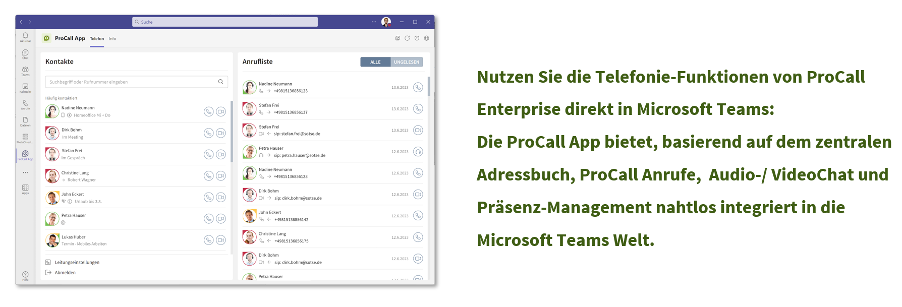 - Telefonie und mehr: ProCall ist jetzt in Microsoft Teams integriert