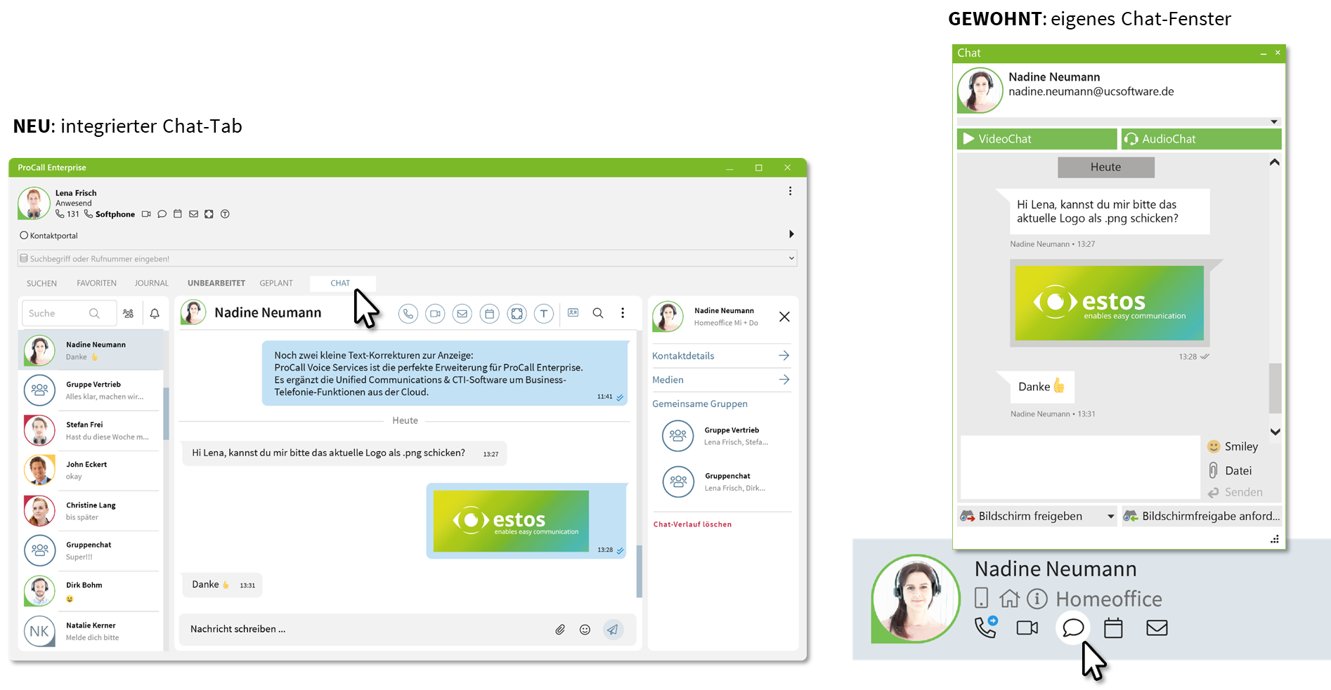 - Verbesserungen an den Benutzeroberflächen: Neues Chat-Erlebnis in ProCall für Windows