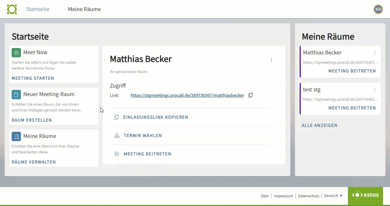 • Die Funktion "Meet Now" für spontane Meetings steht den Benutzern im Dashboard nun zur Verfügung. Details siehe Dokumentation in Rollen und Rechte