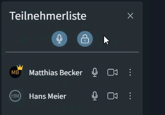 - Moderationsrechte sind in der Teilnehmerliste erkennbar (Symbol mit Krone oder Tooltip).