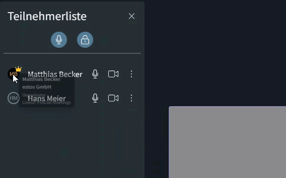 - Der Organisator eines Meetings kann innerhalb eines Meetings über die Teilnehmerliste Moderationsrechte vergeben oder wegnehmen.