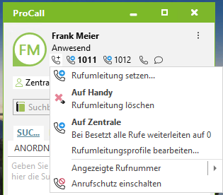 • Die eingerichteten Rufumleitungsprofile werden wieder angezeigt und aktive Rufumleitungen können direkt deaktiviert werden.
