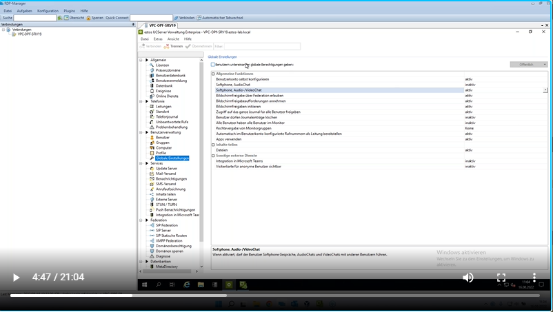 • Konfiguration des ProCall UCServers (User, Gruppen, Umleitungen und mehr)