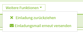 Unter "Weitere Funktionen" haben Sie die Möglichkeit, die Einladungsmail erneut zu versenden oder die Einladung zurückzuziehen: