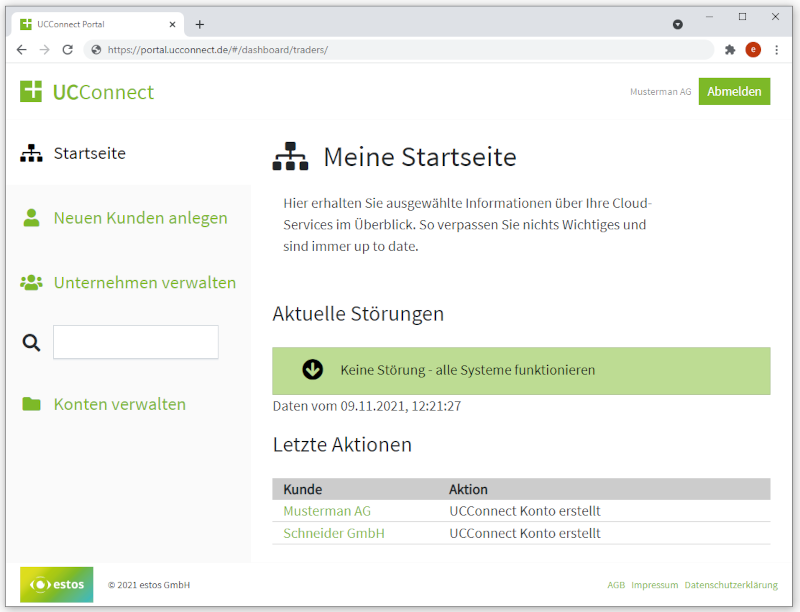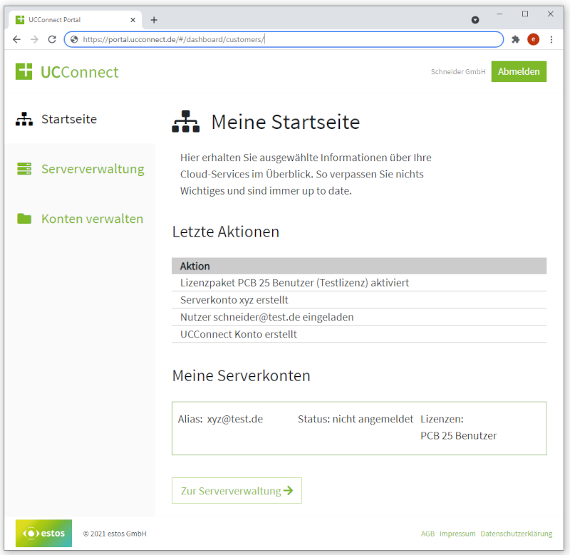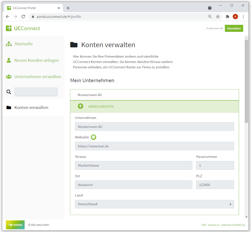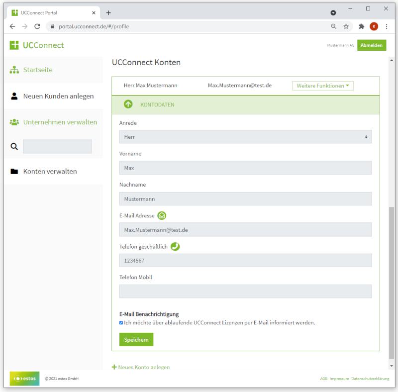 Beispiel Screenshot: UCConnect Konten verwalten - Mein Unternehmen