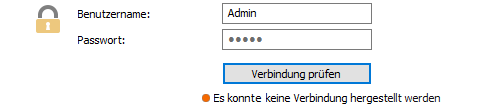 Example screenshot: Login details have been entered correctly, but the error message still reads "No connection could be established."