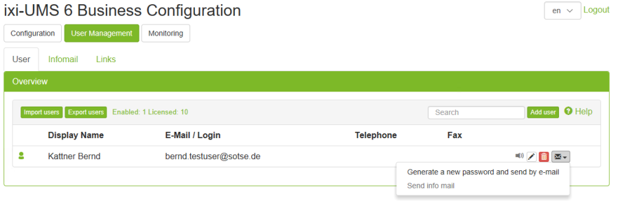 In ixi-UMS Business, it is possible for the administrator as well as for users to assign a new password for ixi-UMS specific web applications.