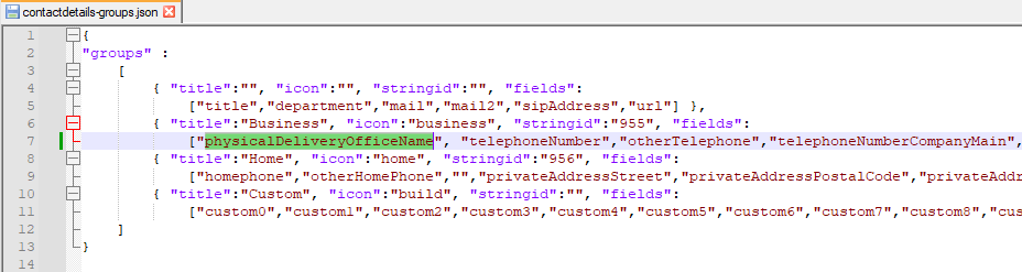 Example screenshot: MetaDirectory template – contactdetails-groups.json