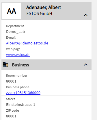 Expand the \estos\MetaDirectory\wwwroot\templates\contactdetails-groups.jsonfile in the installation directory to include the desired data fields, in this case the "Room number":