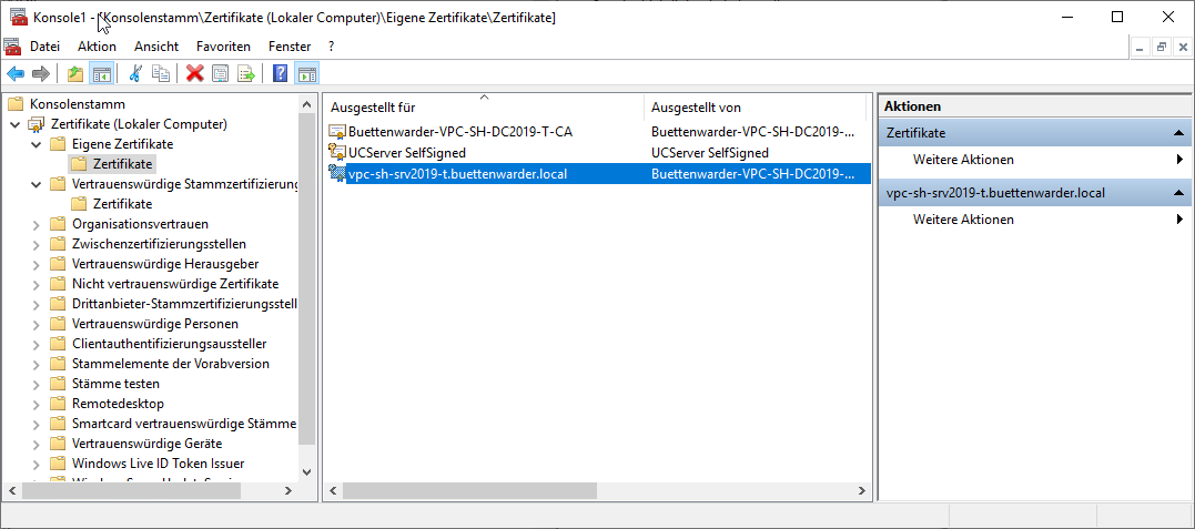 - Store the own server certificate used in the MetaDirectory as *.cer file and the private client key as *.pfx file in the same directory as the RebexTinyWebServer.exe. If necessary, these can be password-protected and exported as files via the management console (right mouse button on the certificate\All tasks\Export ...).