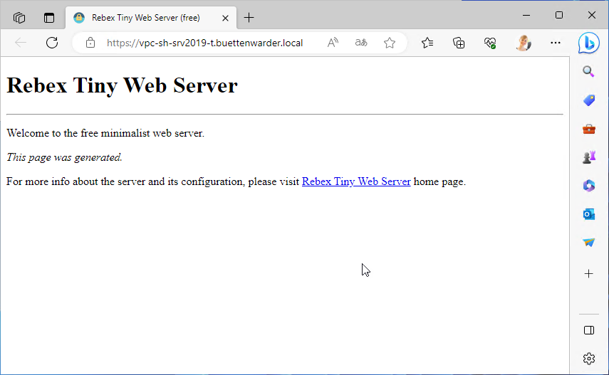 <add key="serverCertificatePassword" value="Adm110" /><?xml version="1.0" encoding="utf-8"?> <configuration> <appSettings> <!-- Server ports for HTTP and HTTPS protocols. Leave empty value to disable the particular protocol. Standard HTTP port is 80. Standard HTTPS port is 443. --> <add key="httpPort" value="80" /> <add key="httpsPort" value="443" /> <!-- Root directory of the web server. --> <add key="webRootDir" value="./wwwroot" /> <!-- Default file to be sent if the request URL points to a directory. --> <add key="defaultFile" value="index.html" /> <!-- Server certificate and its password. --> <add key="serverCertificateFile" value="Buettenwarder.pfx" /> <add key="serverCertificatePassword" value="Adm110" /> <!-- Specifies whether to start the server when the application is launched. --> <add key="autoStart" value="false" /> </appSettings> <startup> <supportedRuntime version="v4.0" sku=".NETFramework,Version=v4.6" /> </startup> </configuration>CODE- Disable the firewall on the MetaDirectory server system for the test or, if necessary, create a rule for the RebexTinyWebServer.exe with the ports used. Only the secured port (https) is required for the MetaDirectory App test.