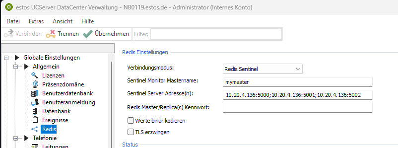 Nevertheless, it is highly recommended to first test the connection to the installed Redis Sentinel system on a UCServer that is not running in the production environment.