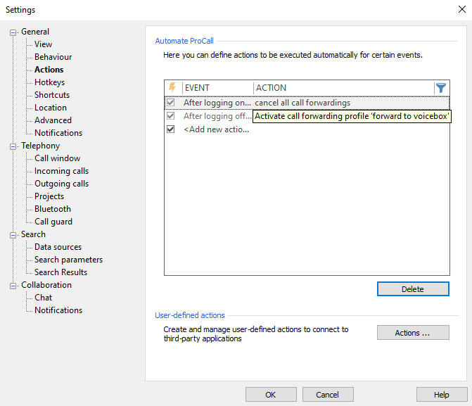 ProCall allows you to perform a variety of actions when a specific event occurs (e.g. incoming call).