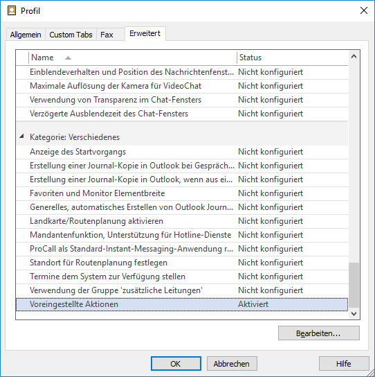 Specification via XML file in Extended profiles on server (since ProCall 7 Enterprise)