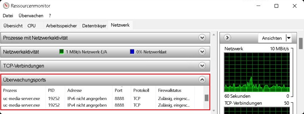 Example screenshot: Resource monitor – Monitor network – Monitoring ports