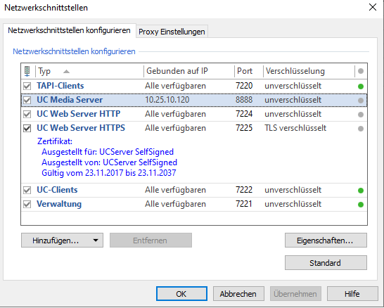 - Select the new certificate in the UCServer administration under network interfaces at "UC Web Service HTTPS".