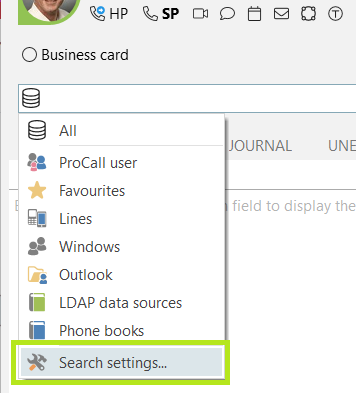A number of data sources can be configured in the ProCall Enterprise client, which are used to resolve a contact to a phone number on-call or on a contact search.