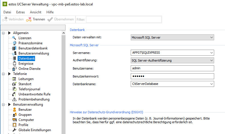 The conversion of the database for the UCServer is an intervention in the overall system and should only be carried out with the necessary expertise.