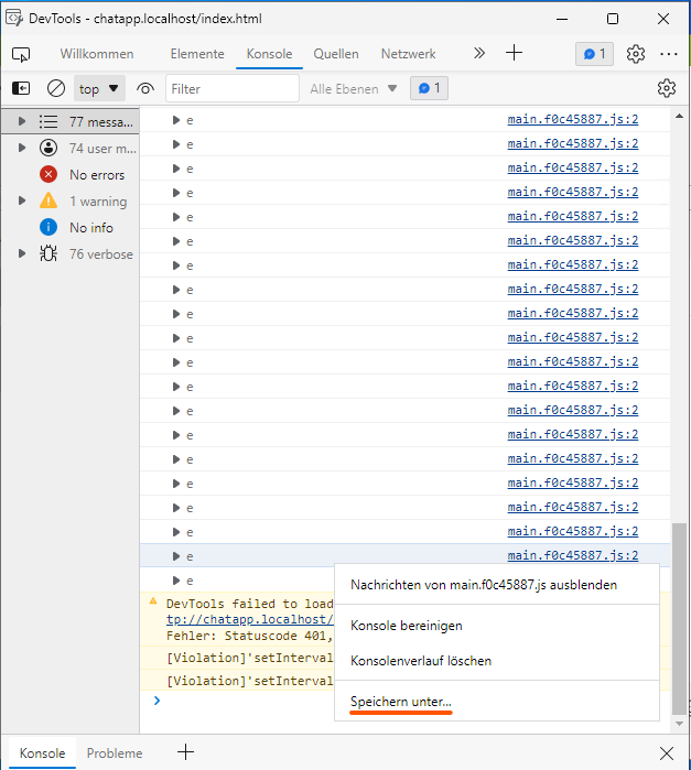 Example screenshot: DevTools – Console – Save as...