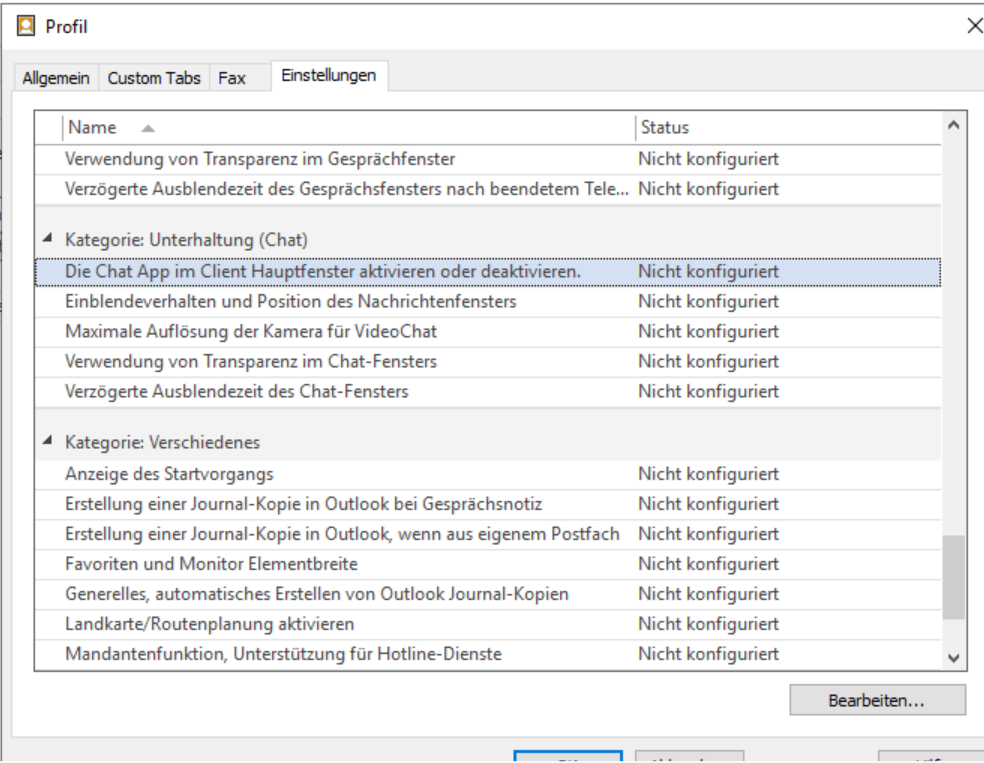 Example screenshot: Properties – Disable chat app in client main window