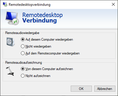 Local Resources >> Remote Audio >> Settings...