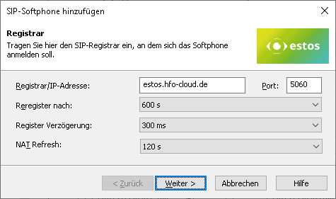 Example screenshot: Add SIP softphone – Registrar