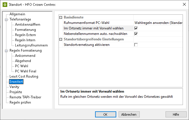 Make sure to set the phone number format PC dialing to Apply dialing rules (default) under Advanced – Basic services and activate the Always dial with area code in the local network option: