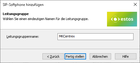 After the SIP lines have been added to the line group, a unique name must still be entered for them: <line group name>.