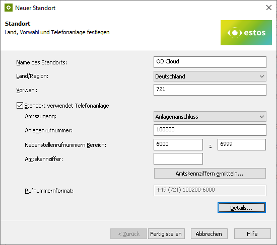The following rules for exchange code processing and formatting were found to be suitable in the test connections to the Ostertag DeTeWe OD Cloud PBX, but may deviate from them due to customer-specific connection variants and require readjustment. You can access these setting options directly via the Details button shown above...