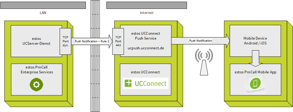 In order for estos ProCall mobile apps to be supplied with messages from the estos ProCall Enterprise server even in background operation on smartphones, the estos UCConnect push service must be used.