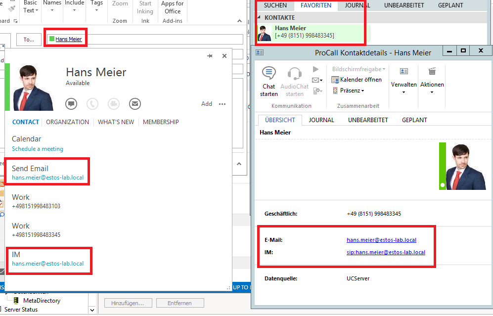 - Check if the ProCall contact searched and displayed matches the contact in Microsoft Outlook.