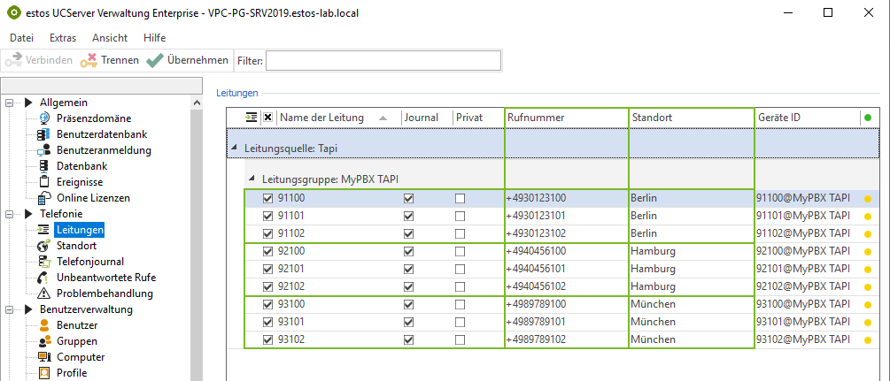 The appropriate rules for formatting must be entered for each location in the UCServer administration under Telephone system → Line numbers using regular expressions.