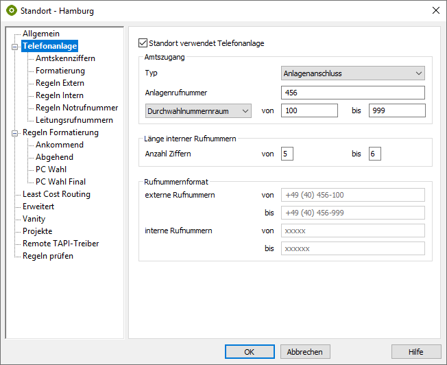 Hamburg-TAPI | +49 40 456 - 0 | 100 | 999 | 92100 | 92999 |