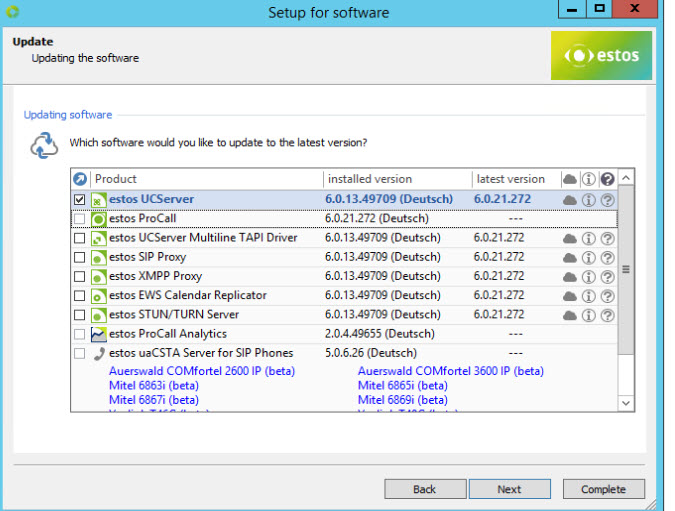 - After you have selected all desired updates, simply follow the instructions and you can easily update your ProCall installation.