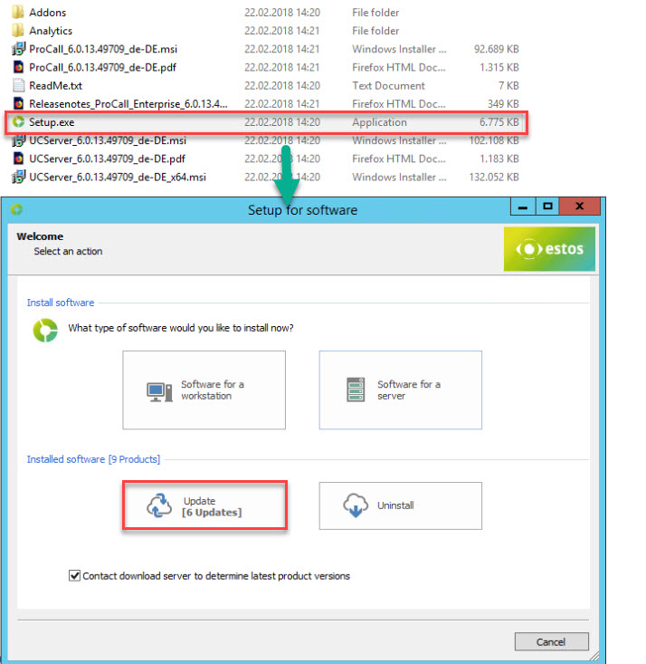 - If add-ons have been installed for the UCServer, the update processes must be carried out manually using the setup programs contained in the download package.