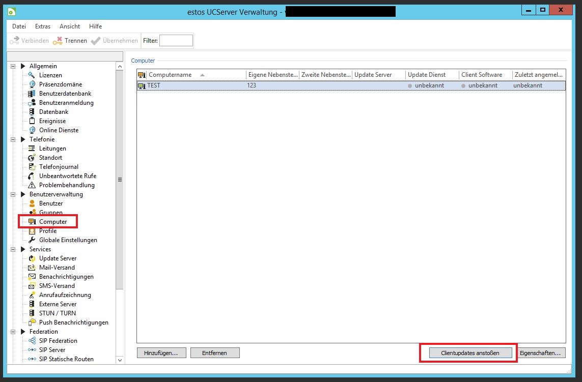 - If the update service was installed on clients, you can update the clients under User Administration – Computer ("Initiate Trigger Client Updates" button) (Please refer to the online help).