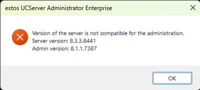 Due to continuous product development, estos does not ensure that different versions of UCServer administration and the ProCall Enterprise server to be managed are compatible with each other.