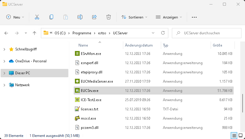 - There are too many files in the log files folder (C:\Program Files\estos\UCServer\logs), so Windows cannot create the new log files fast enough when UCServer starts.