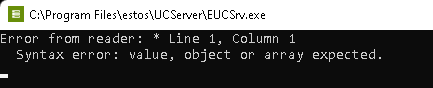 Please check the size and content of the estos ProCall Enterprise server configuration file eucwebconfig.json (in the UCServer configuration directory, default C:\Program Files\estos\UCServer\config).