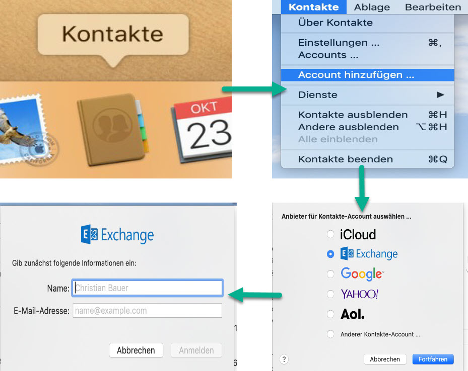 In order to be able to use Microsoft Exchange data anyway, for example, the account can be integrated directly into the contacts area of Apple's macOS operating system.