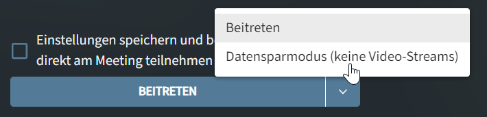 If you do not have a powerful internet connection or want to save data volume on your smartphone, for example, you can switch on the so-called data saving mode when entering a meeting or during the meeting