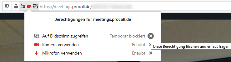 Permissions for meetings.procall.de → delete this permission and ask again. Then refresh the page with F5 or "Refresh".