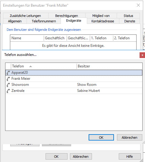 Next, you can specify which of the phone numbers assigned to the user should be assigned to the end device.