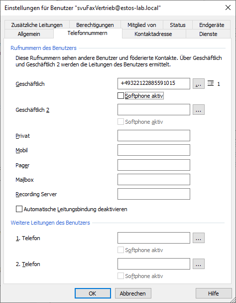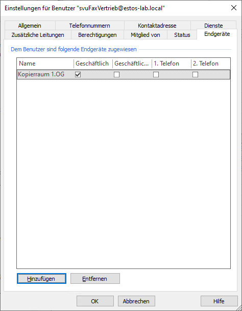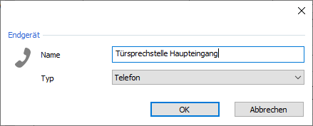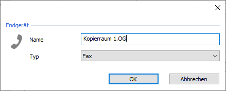 For a fax please select the type "Fax" and for a telephone (e.g. a door station) please select the type "Telephone".