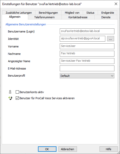 For fax, for example, a fax service user is recommended: