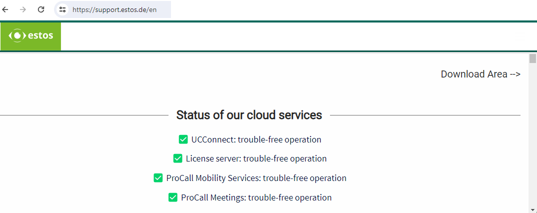 You can now see the current status of our cloud services directly at support.estos.de::