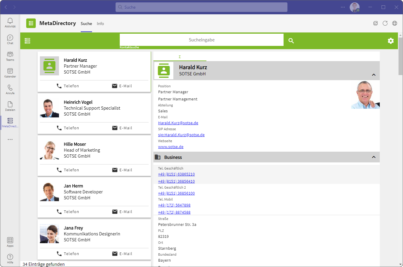 Knowledgebase Release Notes MetaDirectory 5.0 Enterprise Release Notes Current: MetaDirectory 5.0.20 Enterprise Release Notes MetaDirectory 5.0.20 Enterprise Release Notes Release date14 Dec 2022 TypeMaintenance release Version5.0.20Security advice-MetaDirectory Enterprise 5.0.20 was released on 14 Dec 2022 as a maintenance release.You do not have the latest version of MetaDirectory Enterprise yet?Download MetaDirectory 5 Enterprise → Please make a backup of your environment before each update. MetaDirectory 5 Enterprise 5.0.20.11733!!! NEW: estos MetaDirectory Teams App !!!MetaDirectory 5 Enterprise Web-Server as Microsoft Teams App Contact searchPhone number searchSelect from search resultVarious further URL calls such as "mailto:"Optional: Business process integration (BPI)Further information about the software setup can be found under:https://support.estos.de/en/metadirectory-enterprise/estos-metadirectory-teams-app-einrichten-und-in-der-organisation-freigebenDiscontinuationsThe Microsoft Outlook Exchange Replicator (32-bit) will no longer be available with the next setup 5.0.21The EXACTONLINE and Aranes replicators have been removed and are no longer available.Additional new functions/ImprovementsUsers can now be read from Azure (MS Graph).For database fields, a note on use in ProCall Enterprise has been added.The Google contacts API is deprecated and no longer supported. Migration to People API is required.During an update installation it was possible to change the installation path. This is now prevented (installation path "grayed out").Bug fixesFixed an issue where MS graph replication failed for empty or emptied mailbox contacts.Fixed an issue where the password was not requested correctly when reinstalling and updating.An error has been fixed where the user rights in the VLV did not "take hold".Fixed an issue where in the web service HTTP header the settings were reset after restarting the MetaDirectory service.Fixed a bug where some configuration files were missing in the config. directory.No mobile phone numbers were delivered from Swisscom Directories because fields were filled incorrectly. The problem has been fixed.A manually specified path for exporting the configuration is now taken over.Known problems and limitationsKnown issues and limitations →Further InformationMetaDirectory 5 Enterprise specifications →System requirements →MetaDirectory Enterprise product page →