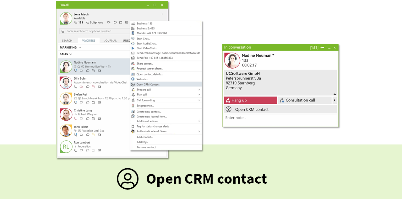 The greatest value of a UC application is created when it is integrated as smoothly as possible into the business processes and procedures of a company. Tedious routine tasks, e.g. checking customer data during a telephone call, are simplified for the user and so errors are minimized. With ProCall 7 Enterprise, the integration of business applications is now easier than with any previous ProCall Enterprise version.